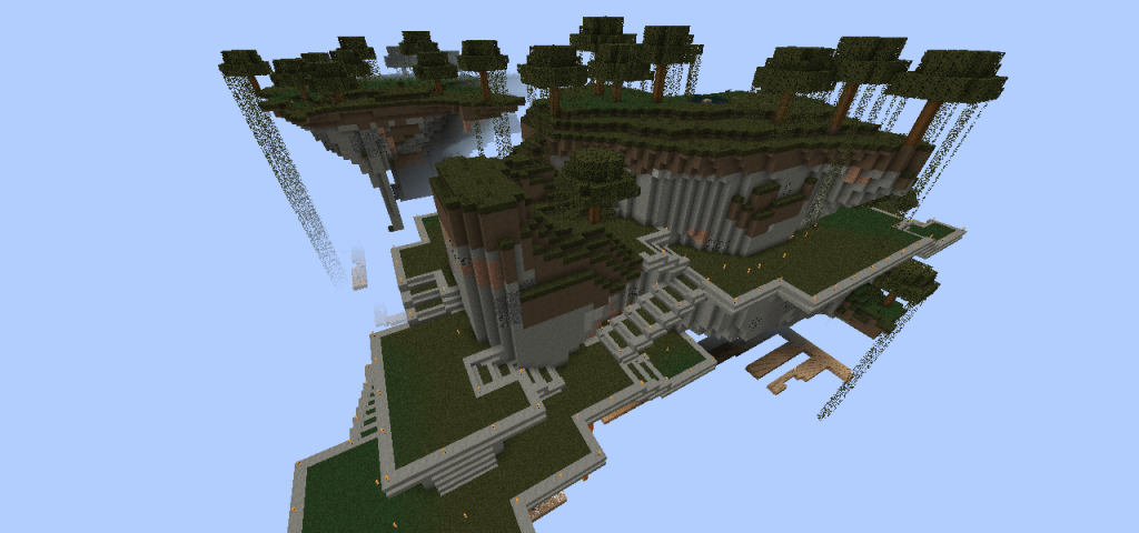 Jugando por enésima vez en un mapa del tipo «islas flotantes», simplemente me dió por comenzar a crear algunas terrazas en los huecos y salientes de la pequeña isla que me sostuvo.